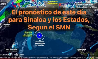 México, 10 feb.2026.-Este día, una vaguada en altura y una circulación ciclónica en niveles medios y altos de la atmósfera, se desplazarán sobre Sonora y Chihuahua,...