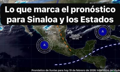 México, 19 Feb. 2026.-Para hoy, el frente frío número 36 se desplazará sobre el norte del país e interaccionará con la corriente en chorro subtropical, una...