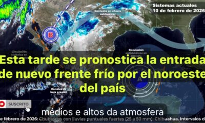 México,9 de feb.l 2026.-Para hoy, una circulación ciclónica en niveles medios y altos de la atmósfera y una vaguada en altura, se desplazarán lentamente sobre el...