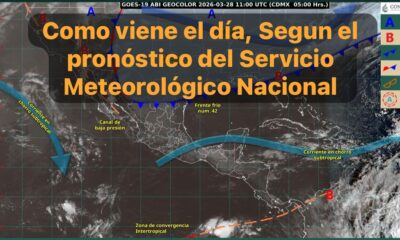 México, 27 marzo 2026.-Para hoy, se pronostica el ingreso de un nuevo sistema frontal (número 42) al norte de México, interaccionará con un canal de baja...