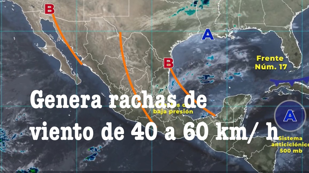 Viento con rachas de 40 a 60 km/h: Golfo de California, Baja California, Chihuahua, Durango, Zacatecas, San Luis Potosí, costas de Sonora y Sinaloa, e Istmo y Golfo de Tehuantepec.