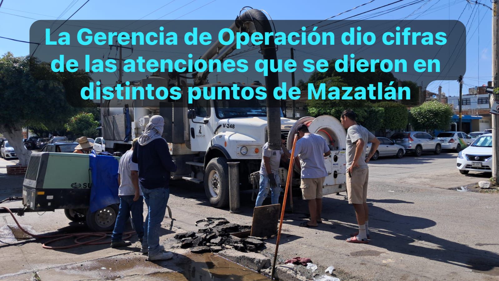 Mazatlán, Sin., 10 nov. 2025.- La primera semana de noviembre marcó una agenda de actividades muy redituable para JUMAPAM, al realizar a través de la Gerencia de Operación, 408 acciones en beneficio de los mazatlecos, destacando una vez más las atenciones que se dieron en distintos puntos de la ciudad para desazolvar y sondear la red sanitaria, que, en algunos casos, presentaba derrames de aguas residuales por taponamiento por desechos sólidos.