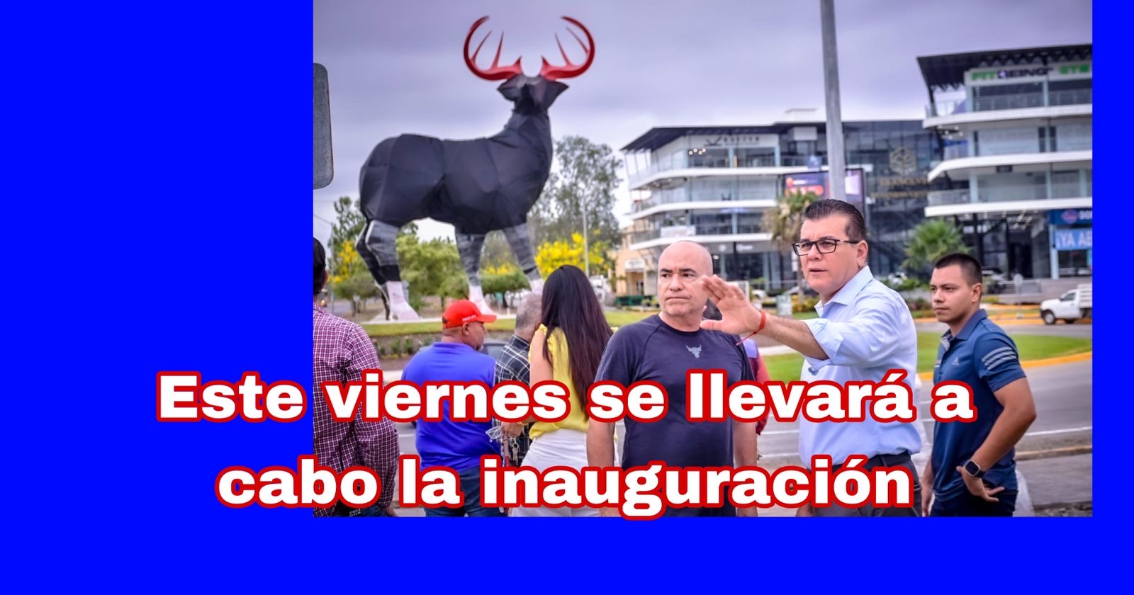Mazatlán, Sinaloa 19 junio 2024-. A dos días de que se inaugure la escultura del Venado en la glorieta de las avenidas Carlos Canseco y Atlántico, se llevan a cabo los últimos detalles de embellecimiento en la zona.