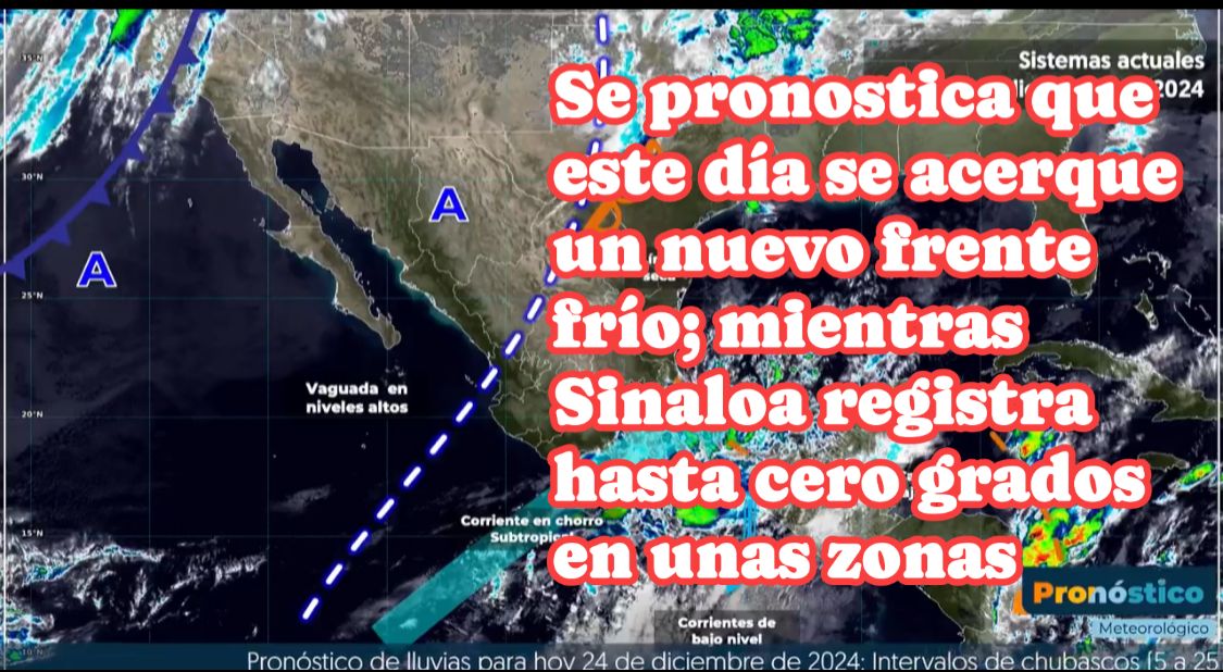 Pacífico Norte: Durante el día, cielo despejado en la mayor parte de la región, con nubes escasas en zonas costeras. Sin lluvias en Sonora y Sinaloa. Por la mañana, bancos de niebla en zonas costeras y heladas en zonas serranas. Ambiente fresco, siendo frío a muy frío con heladas en sierras de la región. Durante la tarde, ambiente cálido, con temperaturas de 30 a 35 °C en zonas de Sinaloa. Viento de componente oeste de 10 a 20 km/h con rachas de 30 a 40 km/h.