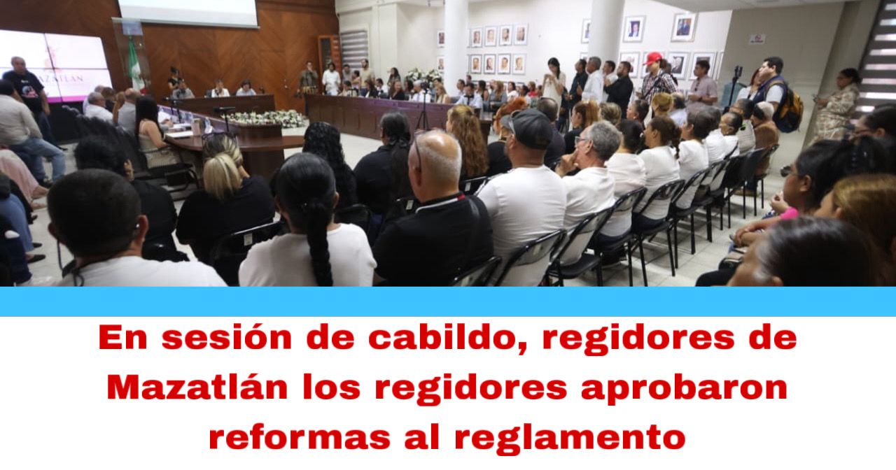 Mazatlán, Sin., 23 oct. 2025.- Durante la sesión ordinaria número 24 del Cabildo, presidida por la Presidenta Municipal, Estrella Palacios Domínguez, los regidores aprobaron por unanimidad el dictamen presentado por las comisiones unidas de Gobernación y Turismo, en relación con la iniciativa de reformar diversos artículos del Reglamento para Ejercer el Comercio en la Vía Pública en el Municipio de Mazatlán.