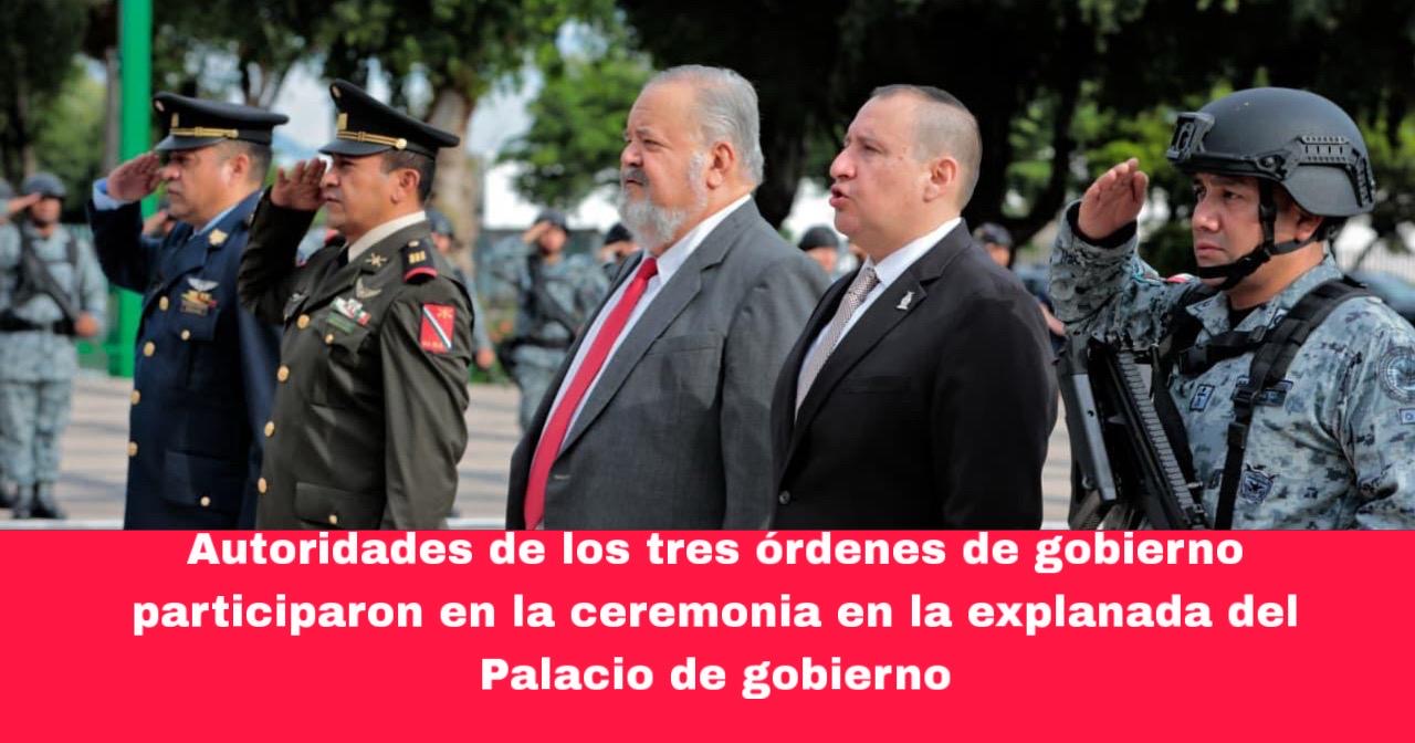 La ceremonia inició con el tradicional izamiento de bandera a toda asta en la plaza Cívica de Palacio de Gobierno, ceremonia que fue encabezada por el subsecretario de Inversión, Planeación y Finanzas, David Moreno Lizárraga, en representación del Poder Ejecutivo.
