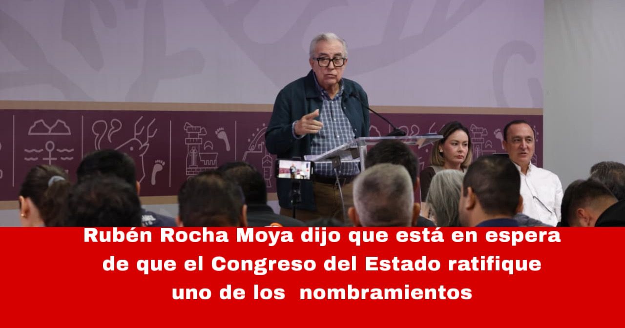 Los Mochis, Sin,.5 ene.2026.- Durante su primera Conferencia Semanera del año, el gobernador Rubén Rocha Moya dio a conocer que designará como nueva secretaria de Transparencia y Rendición de Cuentas, a Sandra Guadalupe Angulo Cázarez, y sólo está en espera de que el Congreso del Estado ratifique dicho nombramiento que esta mañana hizo del conocimiento de los legisladores al enviar un oficio al Poder Legislativo, esto para efectos de tomarle la protesta a la nueva secretaria.