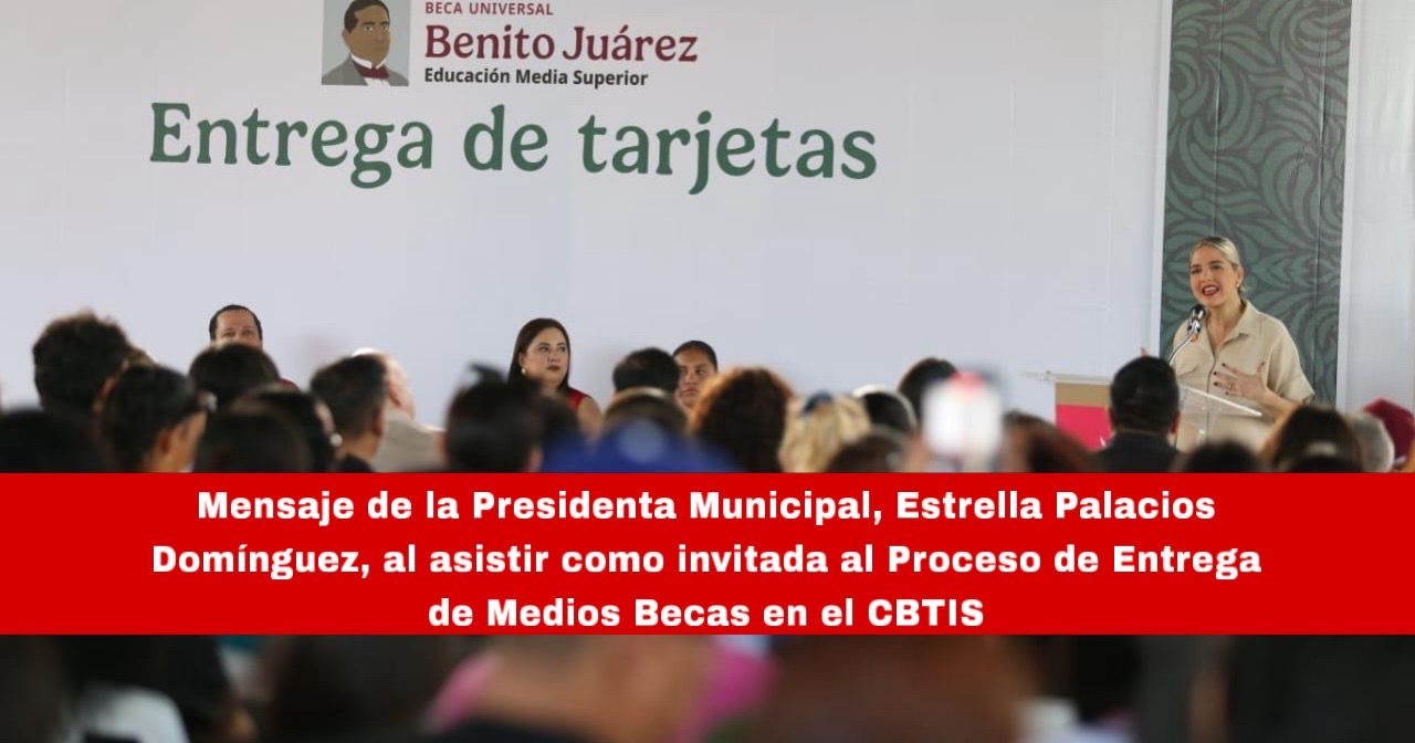 Mazatlán, Sin., 3 dic. 2025.– Los Gobiernos de la Transformación han decidido apostarle a la educación de la juventud que es el futuro de México, enfatizó la Presidenta Municipal, Estrella Palacios Domínguez, al asistir como invitada al Proceso de Entrega de Medios “Beca Universal de Educación Media Superior”, donde 617 alumnos recibieron las tarjetas, en el CBTIS 51, ubicado en el fraccionamiento Villa Galaxia.