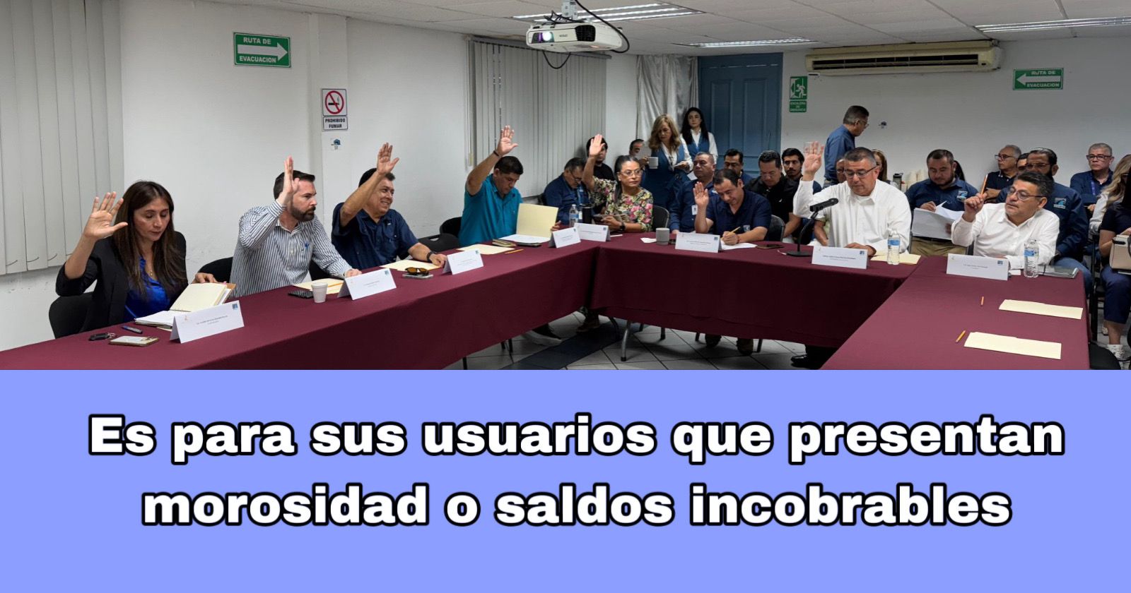 Mazatlán, Sin., 11 sept. 2025.- Con el voto unánime de los asistentes a la primera sesión extraordinaria del Consejo Directivo de JUMAPAM, este jueves se aprobó que el organismo operador continúe brindando descuentos especiales a sus usuarios que presentan morosidad o saldos incobrables, acciones que ayudarán a depurar la cartera vencida de la institución.