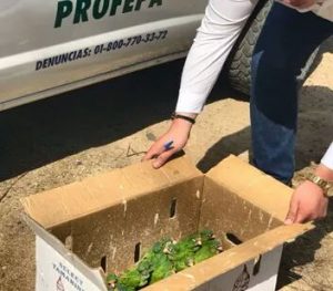En el sitio, al identificar a los inspectores, los presuntos responsables se dieron a la fuga, dejando en el lugar una caja en la que se localizaron a los 34 ejemplares de Perico Frente Naranja (Eupsittula canicularis). Este aseguramiento es el segundo resultado en menos de 10 días.