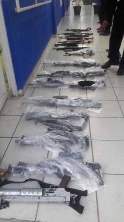 De manera inmediata se inició un operativo en donde se logró la detención de cinco personas de nombre José Carlos “N”. Jesús Fernando “N”, Maro César “N”, Jorge Luis “N” y Juan Carlos “N”, originario de Culiacán, quienes viajaban en las unidades robadas, en cuyo interior se localizó armamento, se trata de: