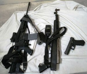 Los policías rescatan a las tres personas privadas de la libertad y aseguran en el sitio 135 tiros para rifle AR-15, 17 municiones para 9 milímetros, 5 cargadores para rifle AR-15, 3 cargadores para rifle AK-47 (cuerno de chivo), un cargador para arma 9 milímetros, un radio marca Motorola ,83 tiros para rifle AK-47, una pistola glock 17 de manufactura austriaca, un rifle AR-15 color negro calibre 223 con mira telescópica y un fusil AK-47 color negro con cachas de plástico, un cuchillo con mango de plástico así como chalecos, botas y vestimenta camuflageada tipo militar.