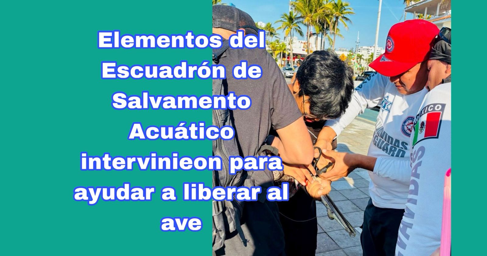 De acuerdo con el reporte, al momento de lanzar la cuerda con el anzuelo, éste se enredó en el ave acuática y, posteriormente, causó una lesión leve al propio pescador al intentar liberarla.