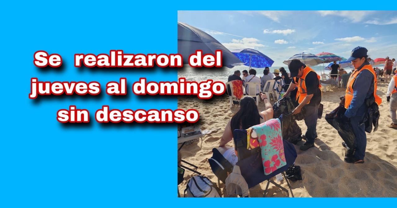 Mazatlán, Sin., 6 abril 2026.– Servicios Públicos Municipales, a través del Departamento de Aseo Urbano, en coordinación con la Operadora y Administradora de Playa (OAP), llevaron a cabo intensas labores de limpieza en las zonas de playa del puerto, con motivo del periodo vacacional de Semana Santa 2026. Estas acciones se realizaron del jueves 2 al domingo 5 de abril, con el objetivo de mantener en óptimas condiciones los espacios turísticos.