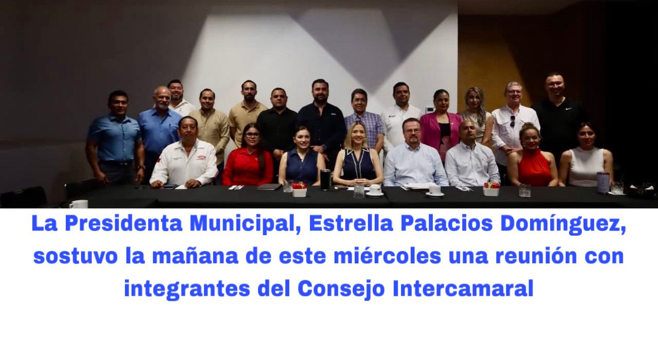 Mazatlán, Sin., 15 abril 2026.– La Presidenta Municipal, Estrella Palacios Domínguez, sostuvo la mañana de este miércoles una reunión con integrantes del Consejo Intercamaral de Mazatlán, con el objetivo de abordar la creación de las comisiones de Seguridad, Planeación y Desarrollo, así como de Movilidad y Transporte Público, en un esfuerzo conjunto por fortalecer el crecimiento ordenado del municipio.