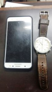 Los agentes se dirigen a la persona sobre el suelo y tras levantarlo y solicitarle una inspección corporal, le encuentran un cuchillo de cocina de 30 centímetros de largo, un arma tipo pistola de diábolos calibre 4.5 así como un reloj marca Fossil y un teléfono celular los cuales son reconocidos por los afectados como de su propiedad.