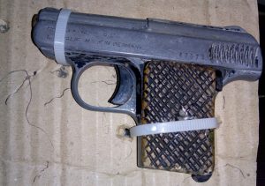 Fue entonces que le hallaron el arma fajada en el lado derecho de la cintura. Se trata de una pistola tipo escuadra calibre 25 milímetros, por tal motivo quedó legalmente detenido y fue trasladado a la SSPM para después de ingreso ser puesto a disposición de la autoridad correspondiente.