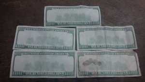 Entre la vestimenta se le encontró residuos de mariguana así como 5 billetes de 100 dólares estadounidenses los cuales cuentan con el mismo número de serie y se percibía su falsedad.