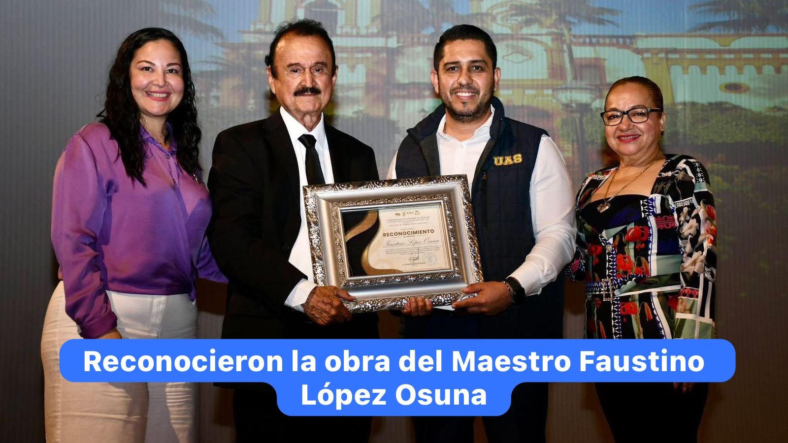 “Hoy es un día muy especial, pues celebramos los 19 años de folklo-UAS, un grupo de danza que ha permanecido a lo largo de estos años. Se dice fácil, pero la verdad es que es el esfuerzo de cada uno de los docentes, pero también de nuestros estudiantes que se han sumado (…) una felicitación al maestro Jesús López por este gran reconocimiento. Y bueno (…) en este momento estamos homenajeando al maestro (…) Faustino López Ozuna, quién es el creador del himno de Sinaloa, así es que es un gran espacio para poder reconocer el arte y la cultura”.