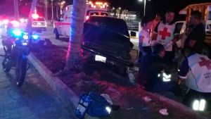 Fue frente al fraccionamiento Los Pinos, poco antes de llegar a la casa del marino, en donde el que manejaba no pudo controlar la unidad y chocó contra una palma de coco, siguió su trayectoria, se estampó en otra de otra y detuvo su camino.