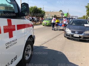 Un motociclista resultó lesionado tiempo después de impactarse contra la parte trasera de un automovil que realizaba un semi alto para dar paso a un grupo de estudiantes de la escuela ubicada sobre la avenida Juan Pablo Segundo y a un costado de la tercera región militar.