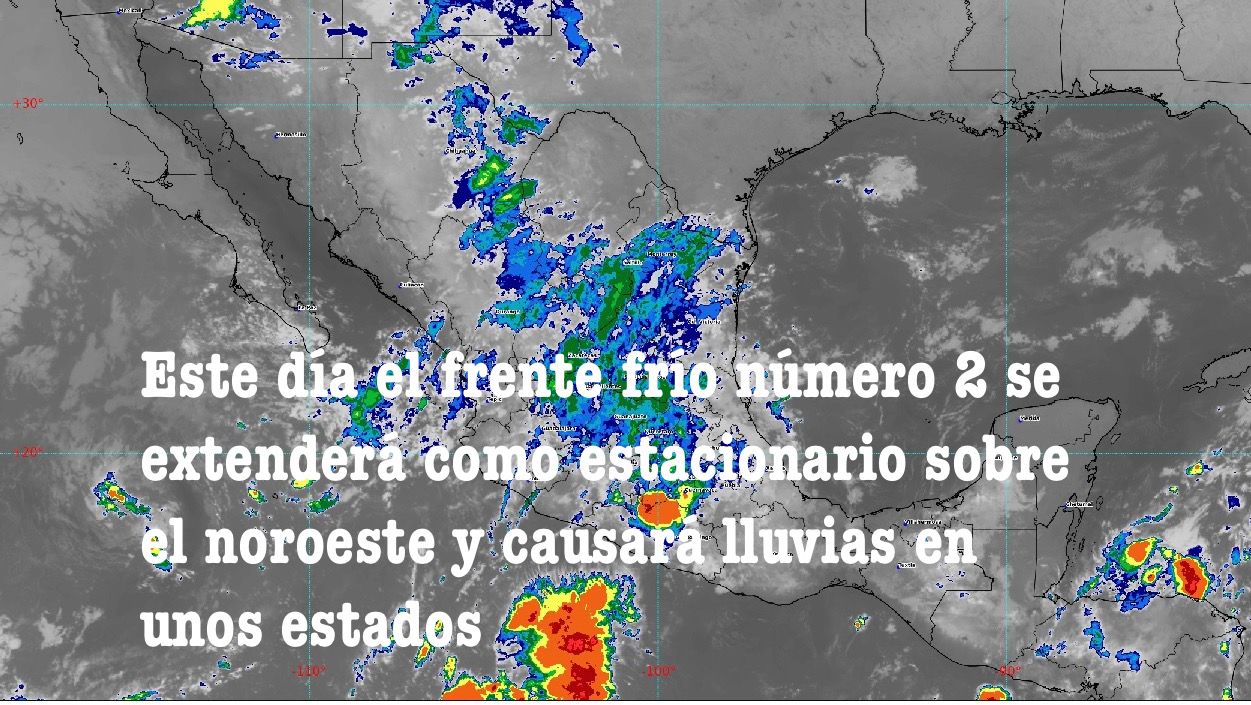 Ciudad de México, a 06 de Octubre del 2022-Durante este día, el sistema frontal Número 2 se extenderá con características de estacionario sobre el norte del país, interaccionará con un centro de baja presión en niveles medios de la atmósfera localizado sobre el noroeste de México, ocasionando lluvias fuertes a muy fuertes con descargas eléctricas y posibles granizadas, así como fuertes rachas de viento en Sonora y Chihuahua.