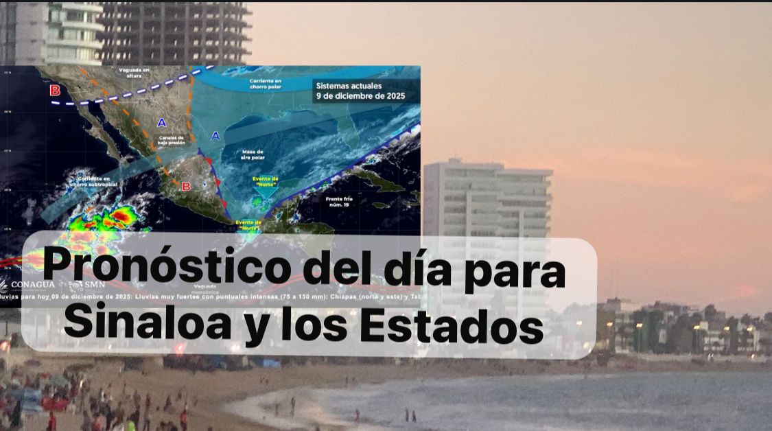 México, 9 dic, 2025.-Hoy, el frente número 19 se extenderá con características de estacionario sobre la península de Yucatán y el sureste mexicano, ocasionará lluvias puntuales intensas en zonas de Chiapas (norte y este) y Tabasco (sur y sureste); muy fuertes en Veracruz (región Olmeca) y Oaxaca (este), y fuertes en Campeche, Yucatán y Quintana Roo.