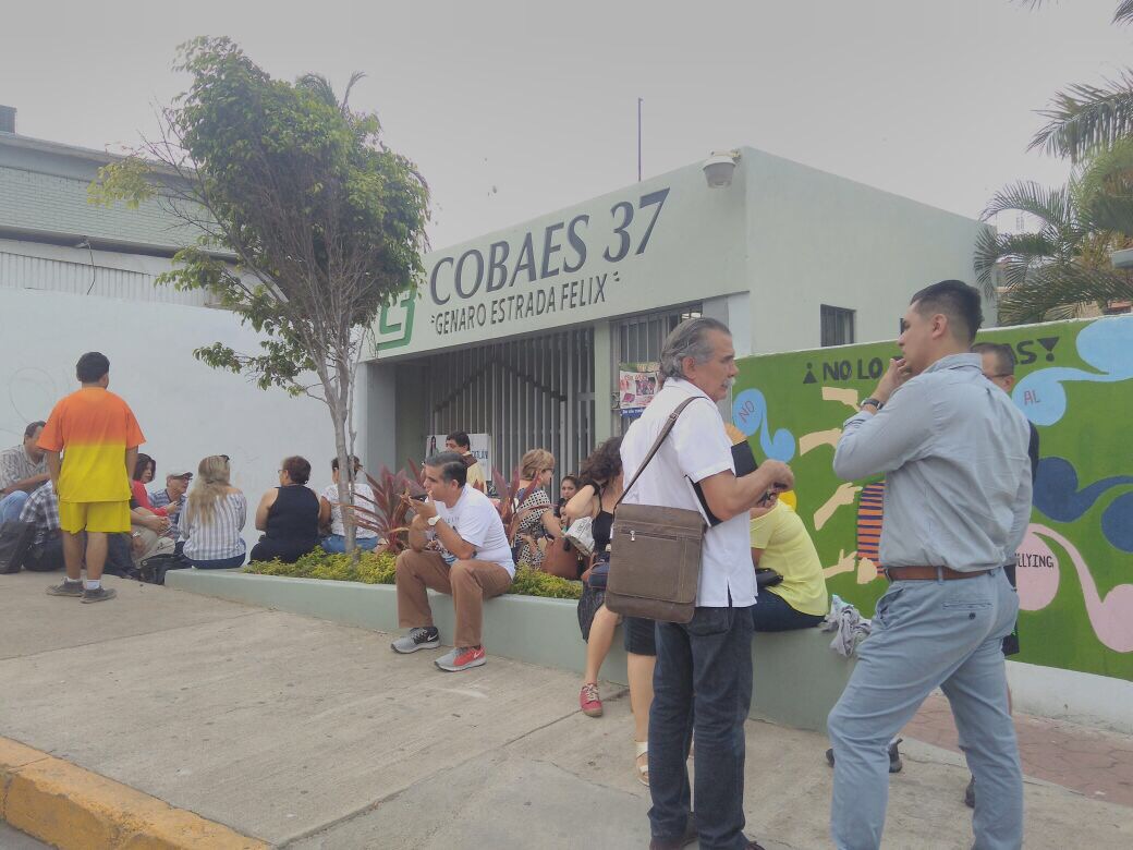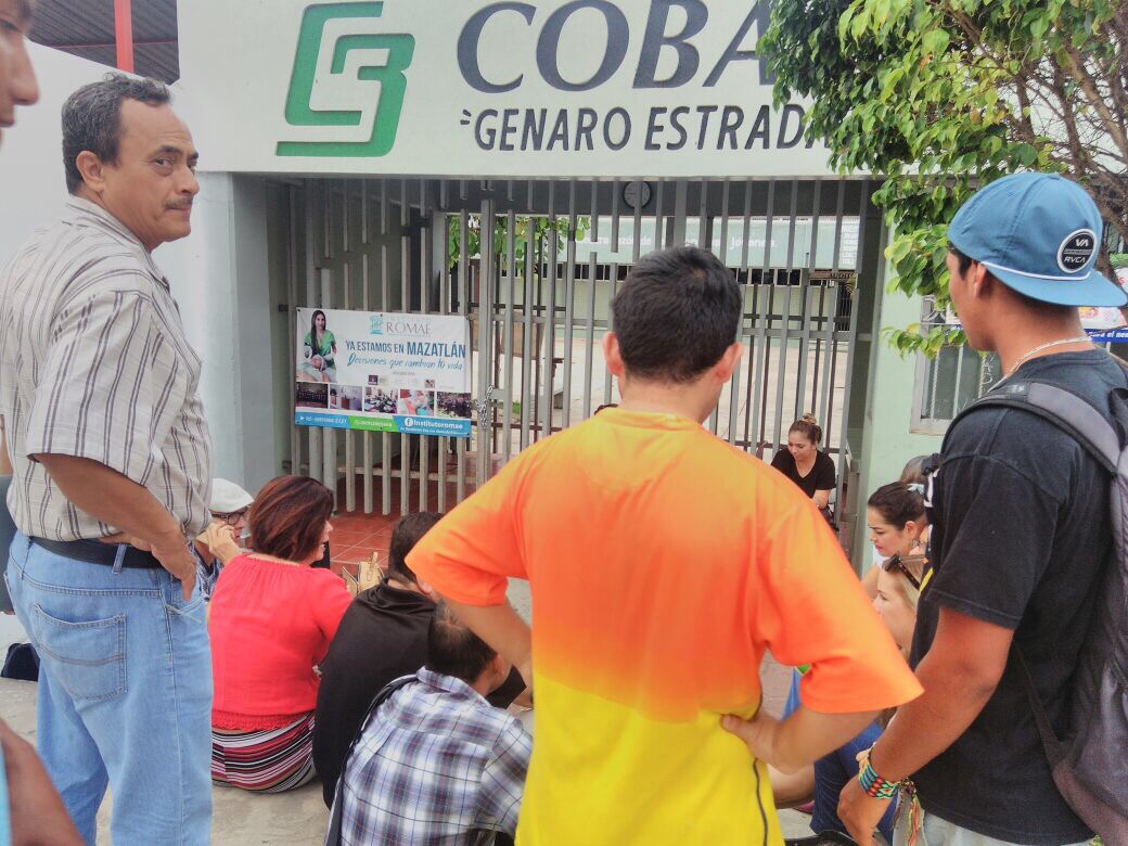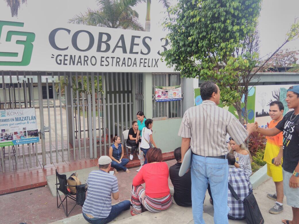 Llegaron a sus labores y los maestros y trabajadores del Cobaes 37 de Mazatlan no pudieron entrar, porque durante la noche fue colocada una cadena y candado a la puerta principal.
