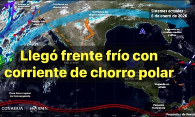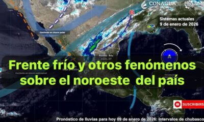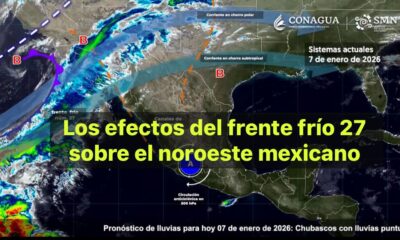 México, 6 ene 2026.-Hoy, el frente número 27 sobre el noroeste del país, será reforzado, en combinación con las corrientes en chorro polar y subtropical y...