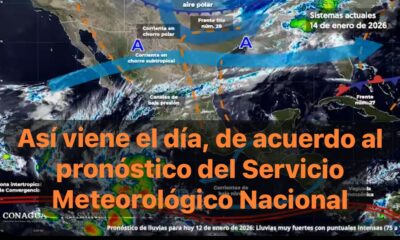 México,12 ene. 2026.-Para hoy, el frente número 27 se extenderá con características de estacionario sobre la península de Yucatán y el sureste mexicano, ocasionará lluvias puntuales...