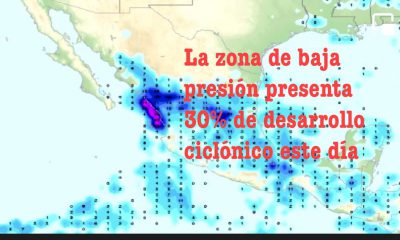 Ciudad de México a 26 de Agosto del 2023.-Hoy una zona de baja presión con probabilidad de desarrollo ciclónico, frente a la costa de Quintana Roo...