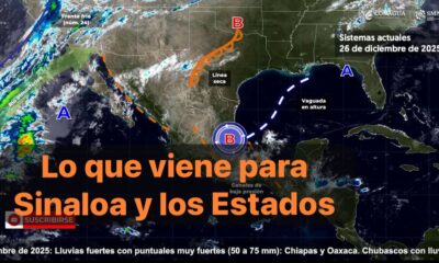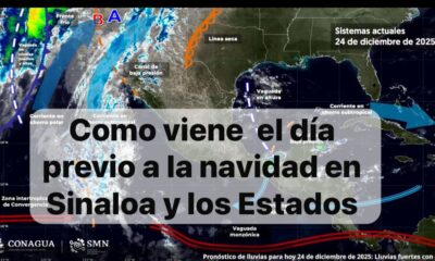 México, 25 de dic. 2025.-Hoy, el nuevo frente frío se extenderá sobre el noroeste de México, interaccionará con una vaguada en niveles medios y altos de...