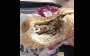 A través de Facebook un usuario compartió un video en el que se aprecian gusanos moviéndose entre la carne de una hamburguesa comprada en Burger King.