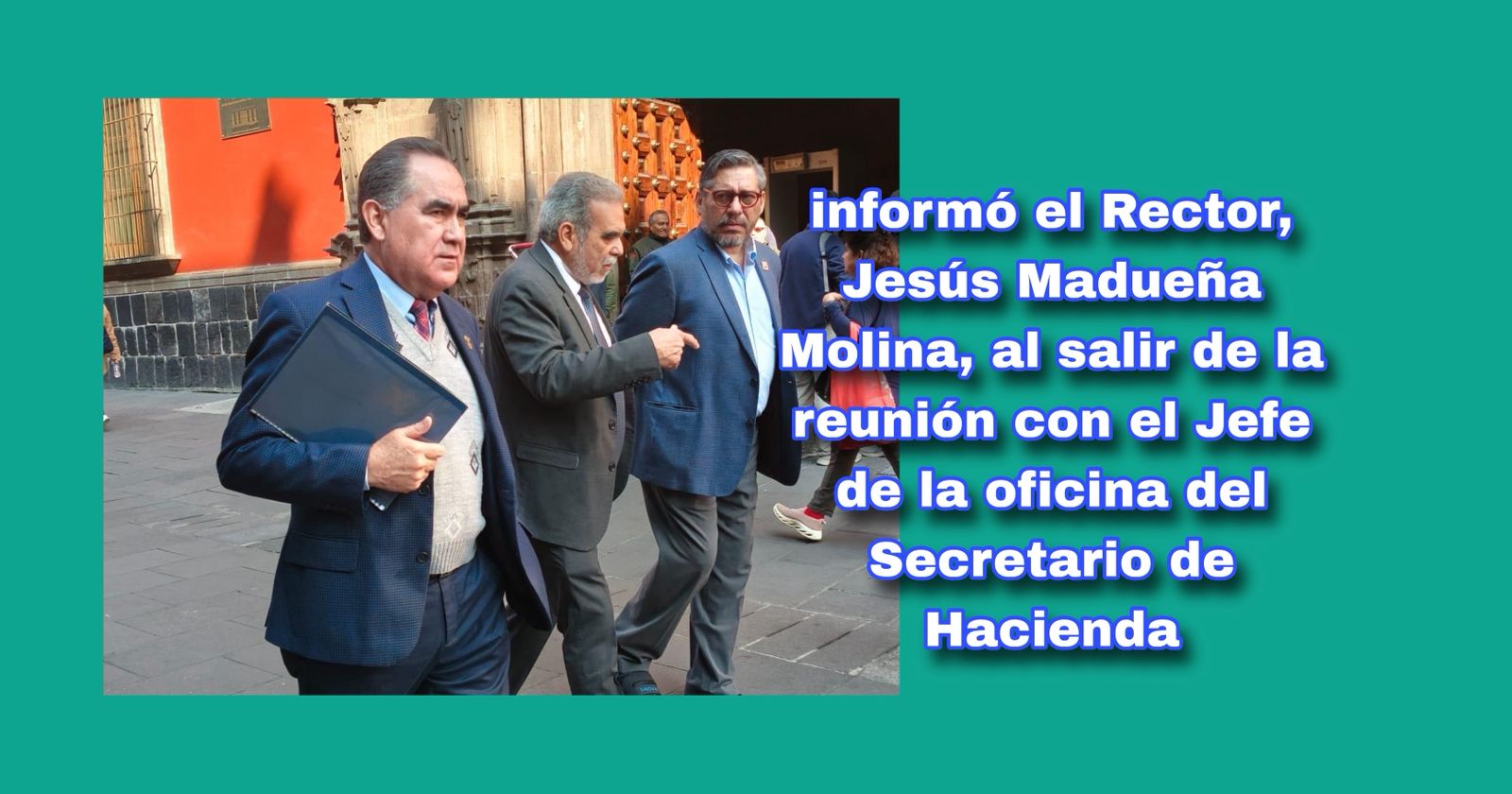 “Hoy lo que estamos pidiendo es que se nos apoye con el cierre de año para que no se queden esos más de 20 mil trabajadores sin aguinaldo, ya nos reunimos con el doctor Ricardo Villanueva, lo hemos tocado también con el señor Gobernador él ya lo ha tocado con Mario Delgado, tuvimos ya una reunión hace unos días con la Subsecretaria de Egresos y seguimos trabajando, hoy nos reunimos con gente de la oficina del Secretario y entregamos la información actualizada y esperemos que en este camino la gestión nos rinda frutos y que en los próximos días estemos viendo con cuánto nos van a apoyar”, dijo el Rector.