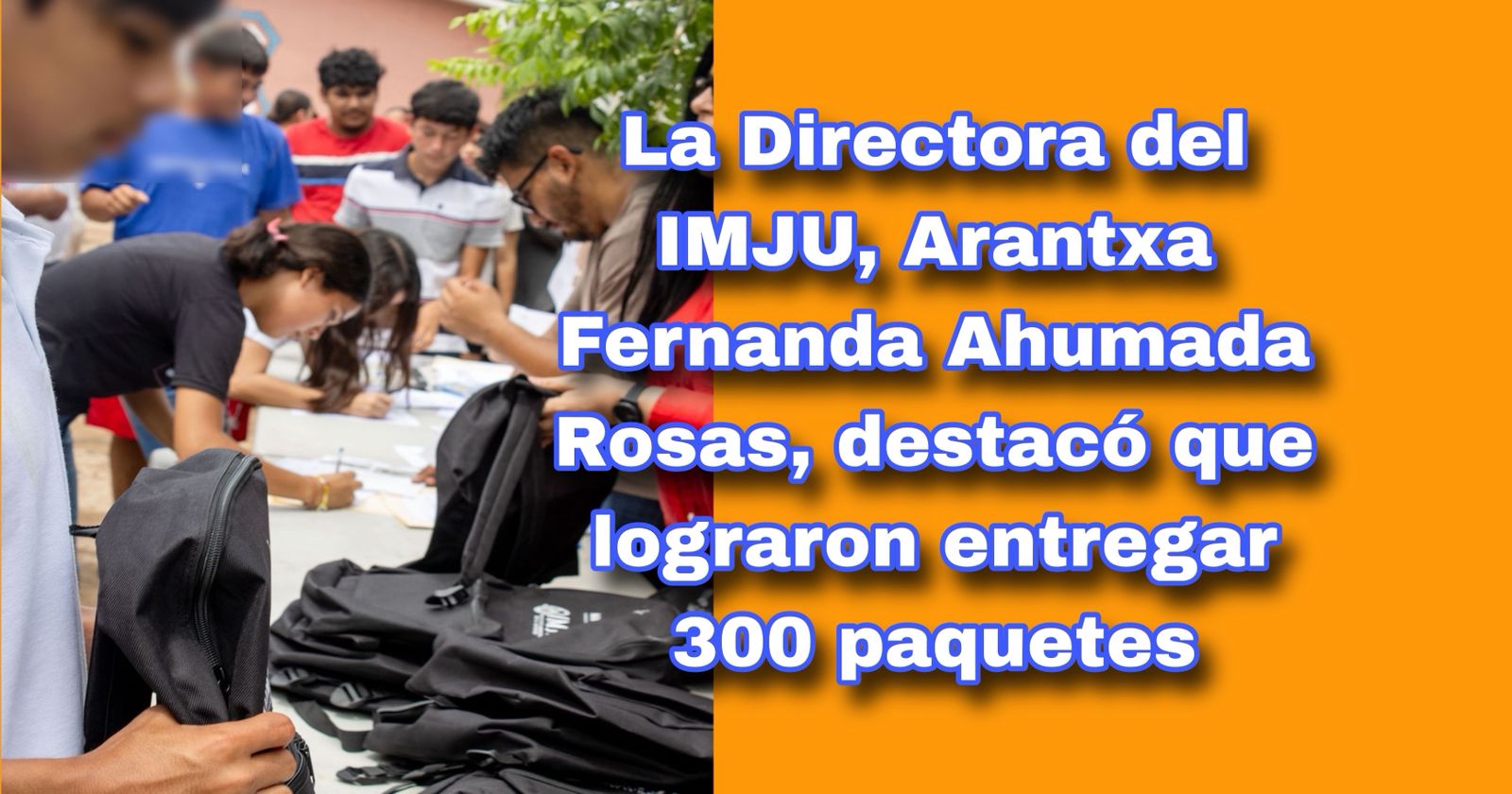 La Directora del IMJU, Arantxa Fernanda Ahumada Rosas, destacó que lograron entregar 300 paquetes de útiles escolares a jóvenes estudiantes, desde primero de secundaria hasta nivel preparatoria.