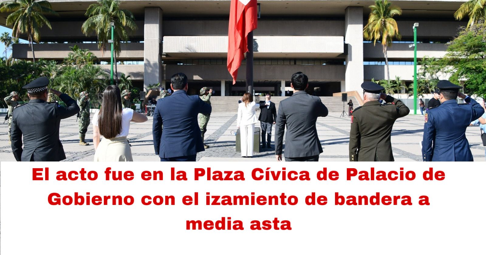 El acto inició en la Plaza Cívica de Palacio de Gobierno con el izamiento de bandera a media asta y los honores de ordenanza correspondientes, donde los asistentes entonaron el Himno Nacional Mexicano.