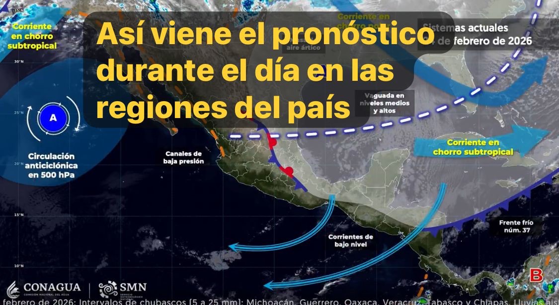 Por la tarde, la masa de aire ártico que impulsó al frente frío número 37 comenzará a modificar sus características térmicas, y mantendrá viento de componente norte con rachas de 80 a 100 km/h en el istmo y golfo de Tehuantepec y rachas de 30 a 50 km/h en las costas de Campeche, Yucatán y Quintana Roo.