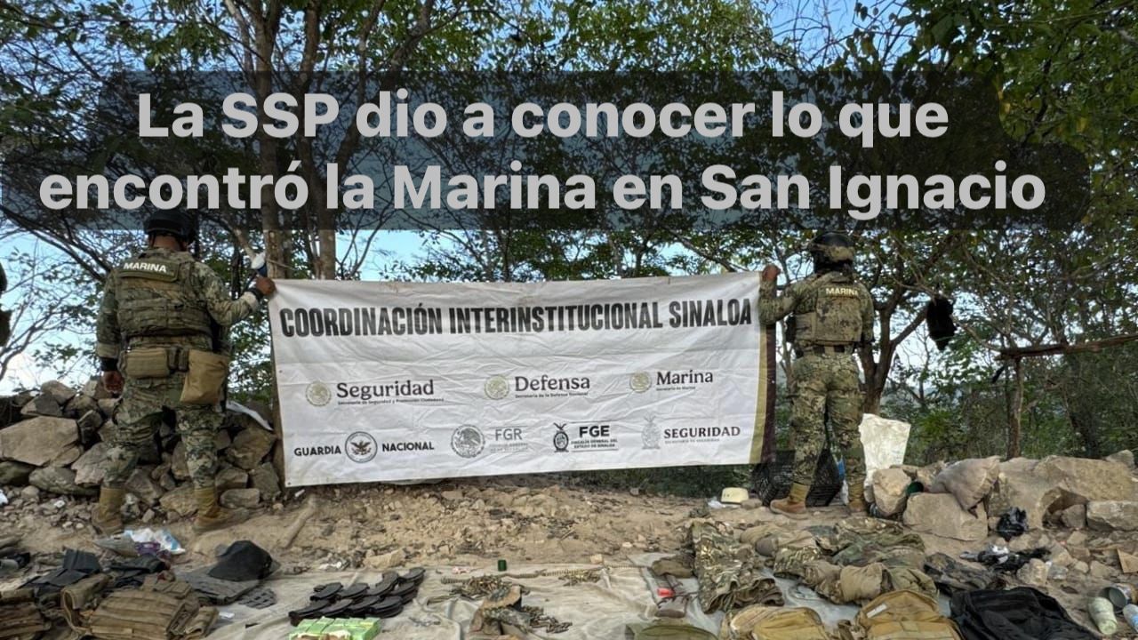 San Ignacio, Sin., 6 dic. 2025.-Localizaron en el municipio de San Ignacio un campamento en el que se encontraron un arma larga, cargadores, cartuchos y equipo táctico.