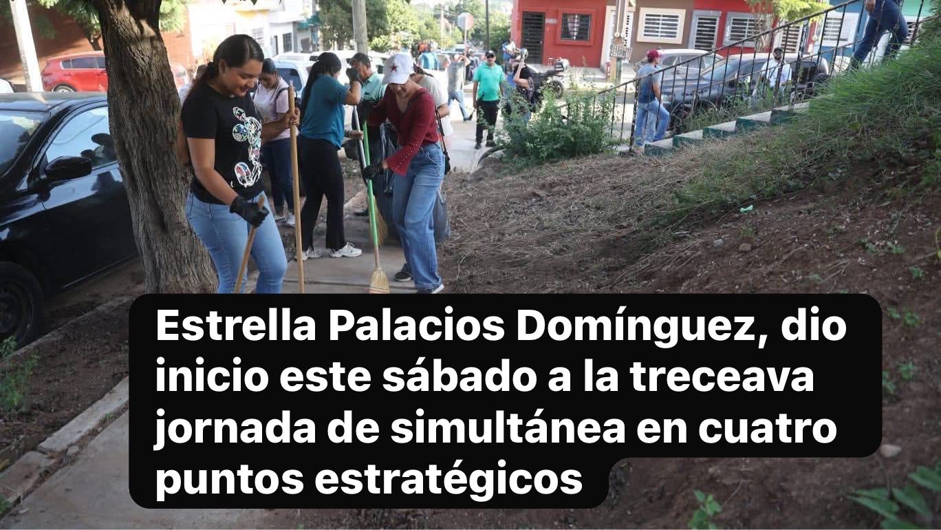 Mazatlán, Sin.,, 22 nov.2025.– La Presidenta Municipal, Estrella Palacios Domínguez, dio inicio este sábado a la treceava jornada de limpieza simultánea en cuatro puntos estratégicos de la ciudad, como parte del programa “Mazatlán te Quiero Limpio”. En punto de las 07:00 horas, desde el parque de la colonia Lomas del Ébano, la Alcaldesa destacó que a través de esta iniciativa se han recolectado 45 metros cúbicos de desechos, equivalentes a siete camiones de volteo y 1,350 costales de residuos sólidos.