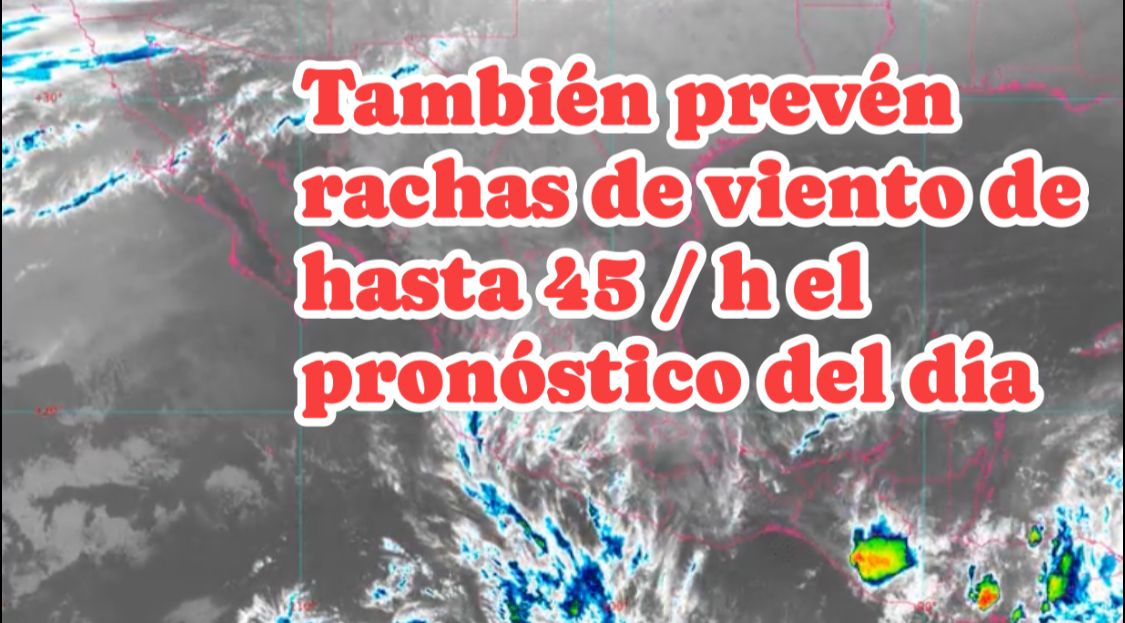 Pacífico Norte: Cielo con nubosidad aislada en el transcurso del día, sin lluvia en Sonora y Sinaloa. Por la mañana, bancos de niebla en zonas costeras. Ambiente fresco, siendo frío a muy frío con posibles heladas en sierras de la región, y gélido con heladas en zonas serranas del norte de Sonora. Durante la tarde, ambiente cálido (con temperaturas de 30 a 35 °C en zonas de Sinaloa). Viento del oeste de 10 a 25 km/h con rachas de 35 a 45 km/h.