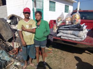 El personal del Sistema DIF Mazatlán entregó despensa. ropa. cobijas, colchonetas y atados de láminas a las dos familias que la madrugada de este miércoles perdieron sus pertenencias a causa de un incendio en el asentamiento junto a la invasión CANACO.
