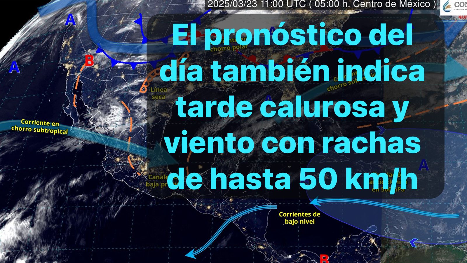Por otra parte, una línea seca sobre Coahuila, originará rachas de viento fuertes en el norte y noreste de México.