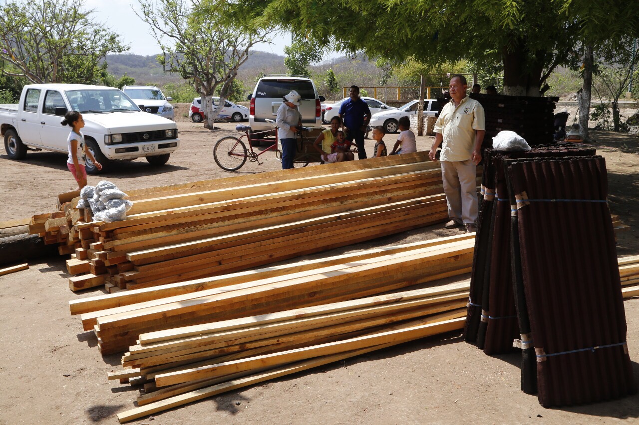 Los apoyos consistieron en la entrega de materiales como 65 polines, 52 barrotes, 312 fajillas 78 atados de lamina y 42 kilos de clavos.