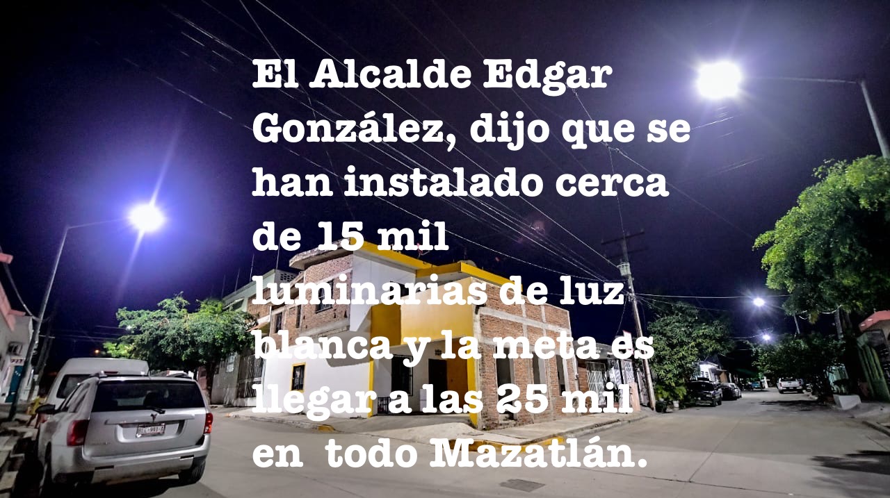 El Alcalde Edgar González al realizar el encendido oficial de los nuevos equipos LED en el evento realizado en la Calle Isla de Venados, comentó que han instalado cerca de 15 mil luminarias de luz blanca y la meta es llegar a las 25 mil lámparas colocadas en todo Mazatlán.