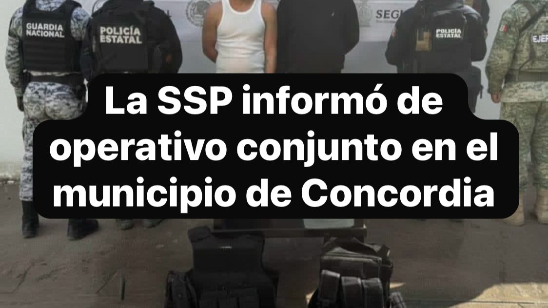 Concordia, Si., 3 feb. 2026.-En el marco del operativo interinstitucional para la búsqueda y localización de los Mineros Desaparecidos, autoridades detienen en Concordia a dos civiles; les aseguran fusiles, municiones y equipo táctico