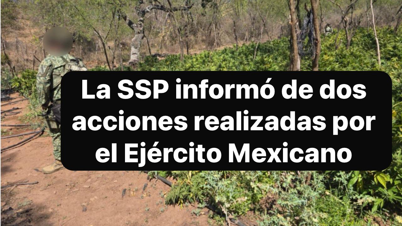 Asimismo, en el ejido El Roble, municipio de Elota, personal militar ubicó una estructura tipo tejaban, utilizada como s3cadero, donde se encontraban alrededor de 1,400 plantas con características propias de la m@rihuana, de aproximadamente 1.5 metros de altura.