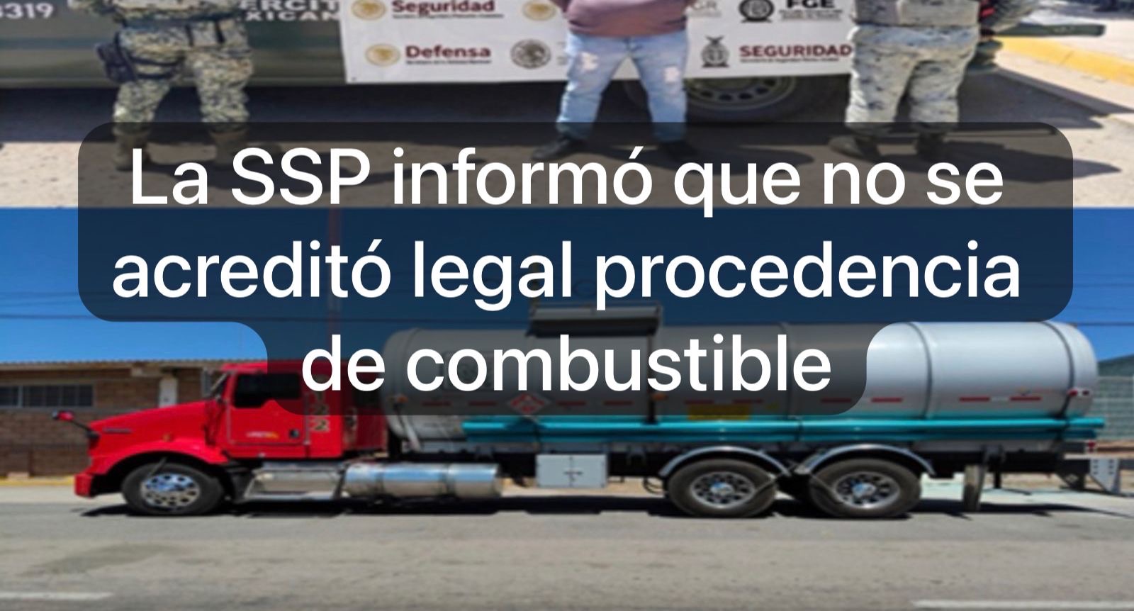 Al encontrarse realizando trabajos de seguridad en un puesto de inspección ciudadana, ubicado en el sector Jardines de Humaya, al sur de la capital del estado, elementos militares d3tuviron a dos civiles que manejaban, cada uno, un tractocamión tipo pipa con capacidad para 25 mil litros, en el que se transportaba gasolina; al solicitarles la documentación pertinente en relación con la procedencia de la carga, estos no pudieron acreditar la propiedad legal del producto.