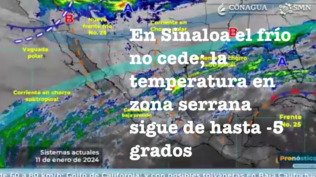 Asimismo, originarán ambiente matutino muy frío a gélido en sierras del noroeste, norte, noreste, occidente, centro y oriente del territorio nacional; así como posibilidad para la caída de nieve o aguanieve en zonas serranas de Baja California, Sonora y Chihuahua.