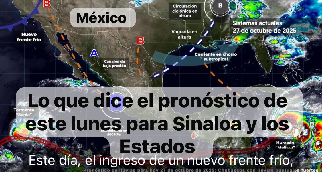 México,27 oct. 2025.-Este día, el ingreso de un nuevo frente, frío número 11, sobre el noroeste de México, ocasionará viento con rachas de 35 a 50 km/h en dicha región.