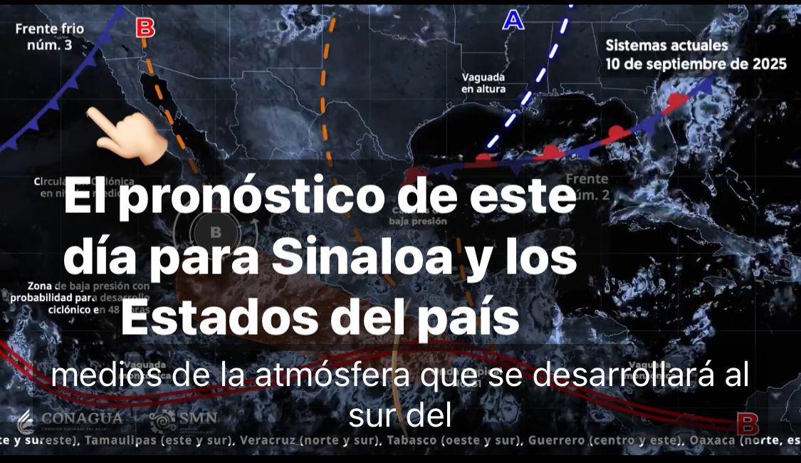 México,10 sept. 2025.-Para hoy, el frente frío número 3 en combinación con la corriente en chorro subtropical, ocasionarán vientos fuertes con tolvaneras y refrescamiento de las temperaturas y lluvias aisladas en Baja California.
